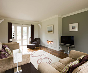 This contemporary fireplace made a beautiful feature in this living room and complemented the solid walnut floor.