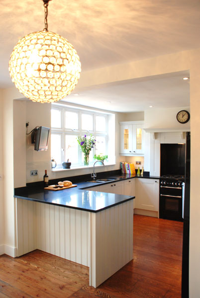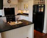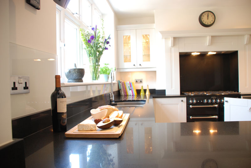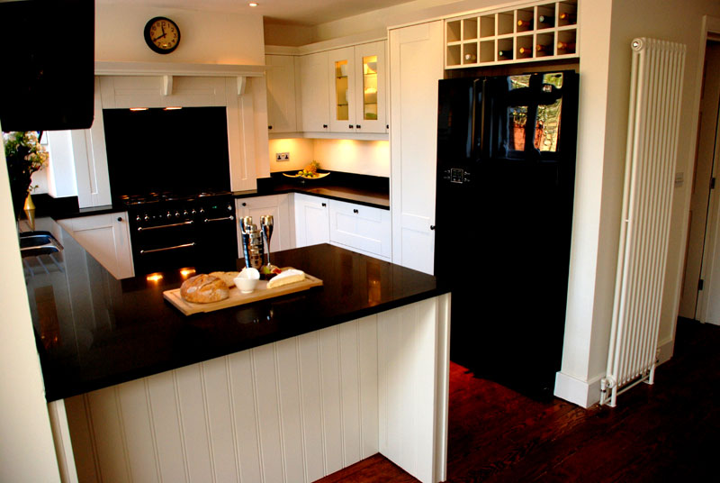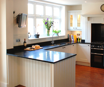 This hand-built shaker style kitchen incorporates a honed composite worktop for a couple of enthusiastic cooks in Guildford.