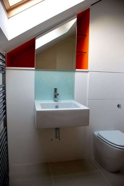 Colour, texture and clever storage added a hint of luxury and fun to these bathrooms in Chiswick.