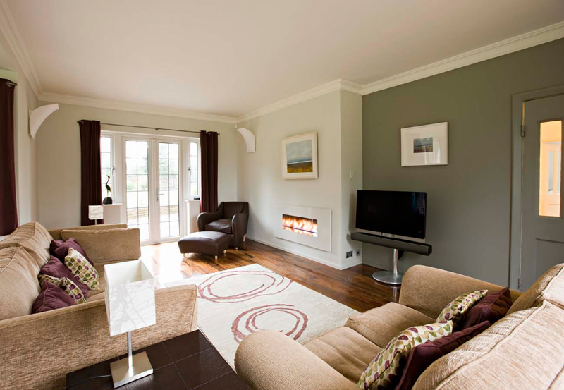 This contemporary fireplace made a beautiful feature in this living room and complemented the solid walnut floor.