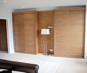 Veneered wardrobes add elegance to this master bedroom in Chiswick.Please contact us with your queries.